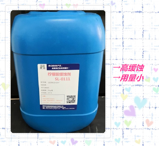 ● 用量:柠檬酸清洗工艺条件下,每吨柠檬酸清洗液加入SL-0111 缓蚀剂3 升(浓缩型800 毫升)。